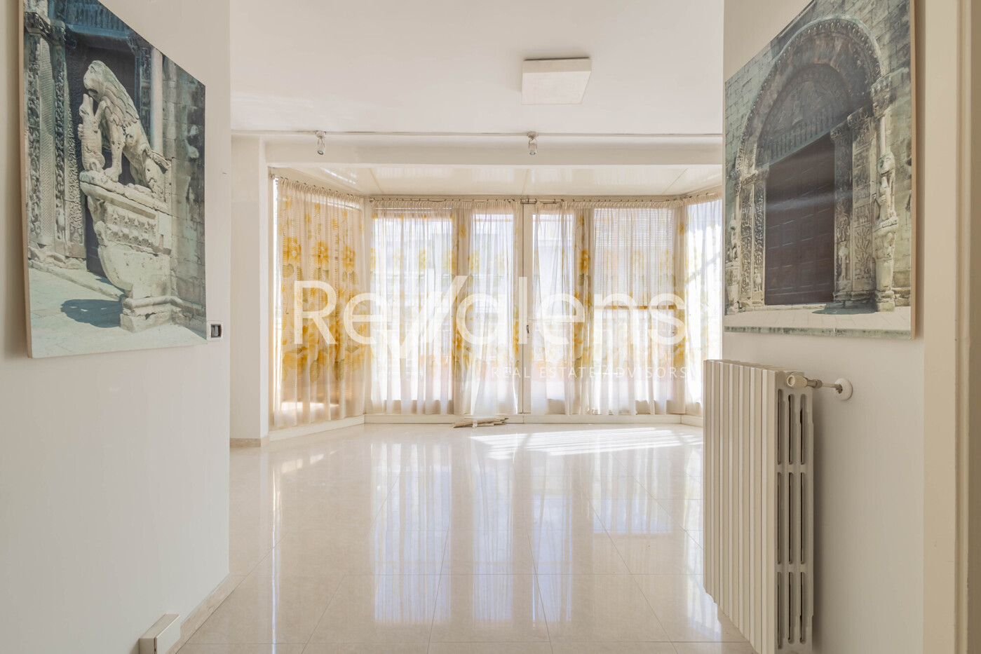 Al suo interno, ingresso su graziosa living room con ampia vetrata sul terrazzo di proprietà esclusiva, cucina, disimpegno con bagno, due camere da letto di cui una con balconcino interno e la seconda con bagno in camera e grande balcone protetto da veranda.